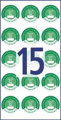 Avery Zweckform 20 mm átmérőjű, zöld színű, matt felületű, biztonsági, öntapadós hitelesítő címke (ellenőrzési matrica, plakett) 2026-2031-es évszámmal, 12 hónapos beosztással, Geprüft gemäß VDE felirattal, biztonsági ragasztóval. A speciális anyagának és ragasztórétegének köszönhetően a címkét nem lehet nyom nélkül áthelyezni, eltávolítani. Egy csomagban 8 lapon, összesen 120 darab, egyenként leválasztható hitelesítő címke található.