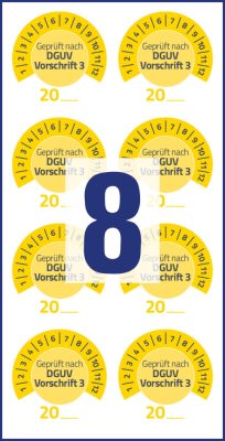 Felhasználási javaslat: a plakett azt mutatja meg, hogy mikor esedékes a következő vizsgálati időpontja egy eszköznek, gépnek, berendezésnek. Gyárilag a teljes évszámból az első két karakter, a 20 került megnyomtatásra, a harmadik és a negyedik karakter alkoholos filctollal egyedileg feliratozható. Kétezertől egészen kétezer-kilencvenkilencig tetszés szerint feliratozható felülvizsgálati címke. Ideális megoldást jelent elektronikai és egyéb eszközök tartós címkézésére, vizsgálati, ellenőrzési matricázásra, jelölésre. A DGUV (Balesetbiztosítási Intézet) elektromos vizsgálatát kétévente el kell végezni.