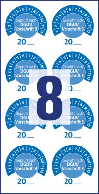 Felhasználási javaslat: a plakett azt mutatja meg, hogy mikor esedékes a következő vizsgálati időpontja egy eszköznek, gépnek, berendezésnek. Gyárilag a teljes évszámból az első két karakter, a 20 került megnyomtatásra, a harmadik és a negyedik karakter alkoholos filctollal egyedileg feliratozható. Kétezertől egészen kétezer-kilencvenkilencig tetszés szerint feliratozható felülvizsgálati címke. Ideális megoldást jelent elektronikai és egyéb eszközök tartós címkézésére, vizsgálati, ellenőrzési matricázásra, jelölésre. A DGUV (Balesetbiztosítási Intézet) elektromos vizsgálatát kétévente el kell végezni.