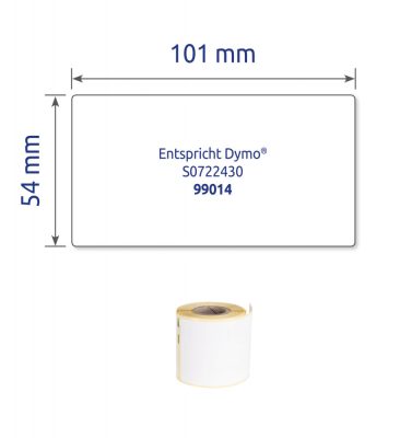 Nyomtatható: címkenyomtatóval nyomtatható öntapadós tekercses etikett címke. Nyomtató típusok: Dymo LabelWriter 300-as sorozat, Dymo LabelWriter 400-as sorozat, Dymo LabelWriter 450-es sorozat, Dymo LabelWriter 4XL, Dymo LabelWriter Wireless, Seiko Smart Label Printer.