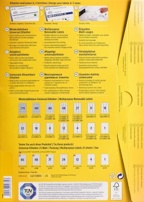 TÜV SÜD tanúsítványTÜV SÜD által bevizsgált nyomtatható öntapadós etikett címke. A minősítés során általánosan használt lézernyomtatókkal, 15000 ív Avery Zweckform öntapadós címkét nyomtattak ki probléma nélkül.