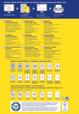 TÜV SÜD tanúsítványTÜV SÜD által bevizsgált nyomtatható öntapadós etikett címke. A minősítés során általánosan használt lézernyomtatókkal, 15000 ív Avery Zweckform öntapadós címkét nyomtattak ki probléma nélkül.