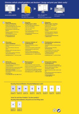 Borotvaéles nyomtatási képA minőségi alapanyagoknak köszönhetően a nyomatot borotvaéles képek (vékony, határozott, tisztán látható kontúrok), kiváló toner tapadás, valamint elkenődésmentes felület jellemzi. Az Avery Zweckform címkéken kiváló nyomtatási eredményt érhetünk el, melyek 100%-ban kompatibilisek az általánosan használt nyomtatókkal (HP, Epson, Canon, Brother, Samsung, Kyocera, Lexmark, OKI).