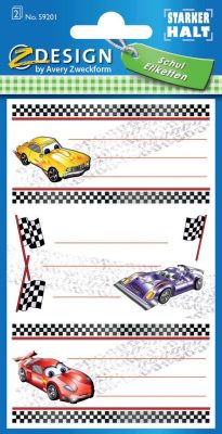 Avery Zweckform Z-Design No. 59201 öntapadó füzet matrica versenyautók motívumokkal. A csomag összesen 6 darab, külön-külön leválasztható füzet matricát tartalmaz.