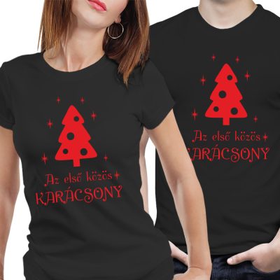 Az első közös karácsony piros karácsonyfa - páros póló