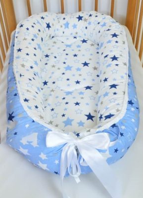 Babafészek babakék színben csillagokkal