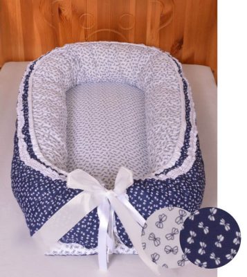 Kivitel:a fészek peremét egy bújtatóházcsík díszíti, amiben a befűzött összehúzószalag segítségével a fészek méretre igazítható.