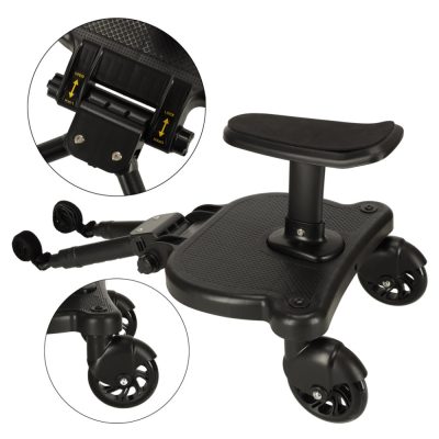 Az univerzális rögzítési rendszer lehetővé teszi a fellépő rögzítését számos gyártó babakocsijához. A maximális teherbírás 25 kilogramm. Tartozik hozzá egy rögzítőpánt , amely lehetővé teszi a fellépő felakasztását a babakocsira, amikor nincs rá szükség.