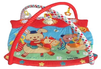 Baby Mix piros szélű téglalap alapú lovagló nyuszis játszószőnyeg
