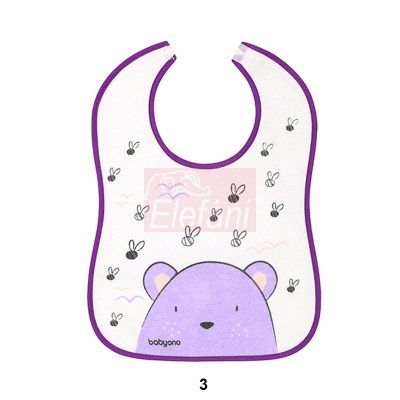100% pamutból készült, tépőzáras, frottír előke, műanyag hátfallal Az előke mérete: 36 x 26 cm