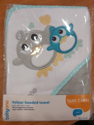 A frottír kapucnis törülközőt a baba első fürdésétől kezdve használhatja. 100% kiváló minőségű bolyhos pamutból készül. Nem irritálja a baba finom bőrét. Nagyon jól felszívja a vizet, és hatékony védelmet nyújt a hideg ellen. Ez a törölköző megfelel a legigényesebb szülők elvárásainak, akik nagyon puha szövetből készült termékeket keresnek. A gyermek kényelme érdekében a kapucni alját további anyagréteg béleli. A kapucni dekoratív, állatos rátétekkel lett díszítve. Átlátszó táskába csomagolva. A kapucni akasztójával a törölköző felakasztható, ami megkönnyíti annak szárítását.
