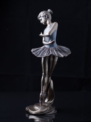 Ez a szobor nem csupán egy szobadísz, hanem egy történet: egy mozgalmas, mégis nyugodt pillanat, amelyet a tánc ihletett. Az anyaga polirezin bronz bevonattal, így a megjelenése és tapintása az igazi bronz műalkotások eleganciáját tükrözi.