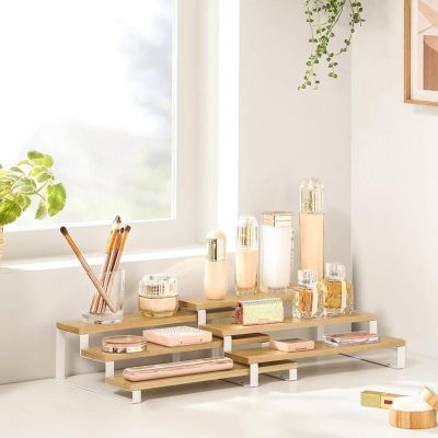 bambusz fűszertartók, 2 db fűszertartó készlet, bővíthető 3 szintes, tárolópolc szekrényhez, munkalap, konyha, fürdőszoba, fehér: