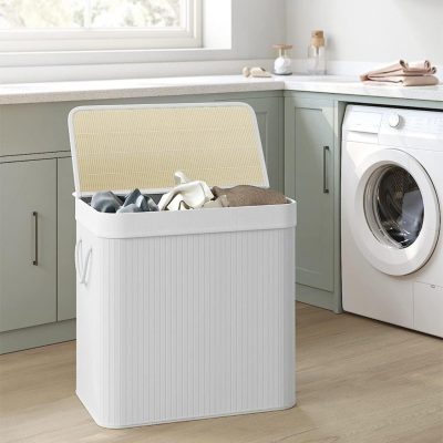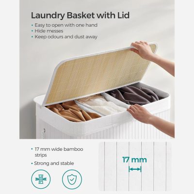 • Stabil és összecsukható: A 17 mm széles bambuszcsíkok extra robusztussá, stabillá és könnyen felvehetővé teszik a ruhaválogatót (25 kg-ig).Ha nem használja, a szennyeskosarat összehajthatja és elteheti, hogy helyet takarítson meg