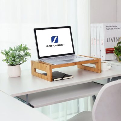 Natural Bambusz Monitor állvány emelő asztali rendszerező tárolóhelyekkel laptop TV számára, otthon a munkahelyről