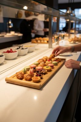 A természetes bambusz anyag meleg, prémium hatást kelt, így kiváló választás hotelek, reggeliztető helyek és igényes vendéglátó egységek számára. A fa megjelenés kontrasztot ad a rozsdamentes és porcelán elemek mellé.