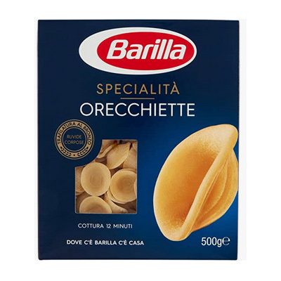 Kagyló tészta 500 g , Barilla, A Collezione tészta ,Tökéletes Húsok és zöldségek mellé.. Átlagos tápérték 100 g termékben: Energia: 1524 kJ - 359kcal , Zsírok: 0 g ebből telített zsírsavak: 0.5 g , Szénhidrátok: 71,7 g , ebből cukrok: 3,5 g , Rost: 3 g , Fehérjék: 12 g , Só: 0,013 g .Minőségét megőrzi: a csomagoláson feltüntetett időpontig (nap/hó/év). Tárolás: Hűvös, száraz, helyen. Származási ország: Olaszország. Forgalmazó: Milis Faplusz Kft ,8092. Pátka Gárdonyi u.36