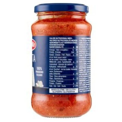 Barilla ricottás, paradicsomos ragu, 400 g, Összetevők: paradicsompép 66%, ricotta 13% (savó, tejszín (tej), só), paradicsomsűrítmény 9%, hagyma, napraforgóolaj, Grana Padano D.O.P (tej, tojáslizozim, Pecorino Romano D.O.P (tej juhtej), só, aromák (tej), petrezselyem, cukor Figyelem : egyes összetevők allergiát vagy intoleranciát okozhatnak. Nyomokban tartalmazhat: tejtermékek, Tápanyag-információ 100 g: 391 kJ / 94 kcal, Zsír: 5,8 g, ebből telített zsírsavak: 1,9 g, Szénhidrát: 6,1 g, ebből cukrok: 4,5 g, Fehérjék: 3,4 g, Rost: 1,8 g, Só: 1 g Minőségét megőrzi a csomagoláson feltüntetett időpontig (nap/hó/év) , Tárolás: Hűvös, száraz, helyen tartandó , Származási ország: Olaszország , Forgalmazó: Milis Faplusz Kft 8092 Pátka Gárdonyi u.36