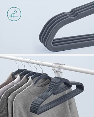 Az ultravékony kialakítás sok pénzt takarít meg: Soha nem kell kidobnia régi, elhasznált ruháit, hogy helyet adjon az újnak, a bársony vállfák maximalizálják a szekrény helyét.