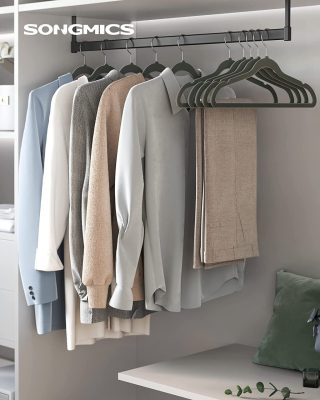 A puha bársonnyal bevont vállfák nem engedik le a ruhákat lecsúszni, miközben gyengéd védelmet nyújtanak nekik.