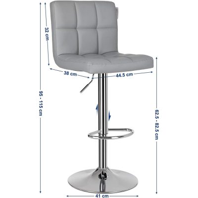 Bárszék 2 db-os szet, állítható magasságúkonyhai szék, Szürke |