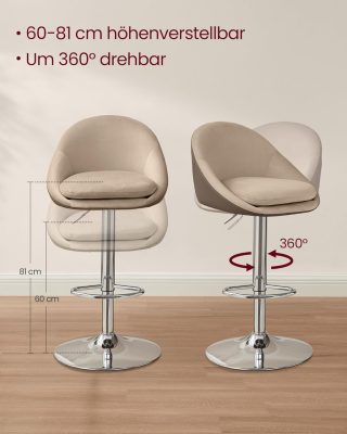 • Stílusos dizájn: a bársony elülső és a PU hátulsó színben összehangolt, egyedi stílust és elegáns megjelenést kölcsönöz ennek a bárszéknek