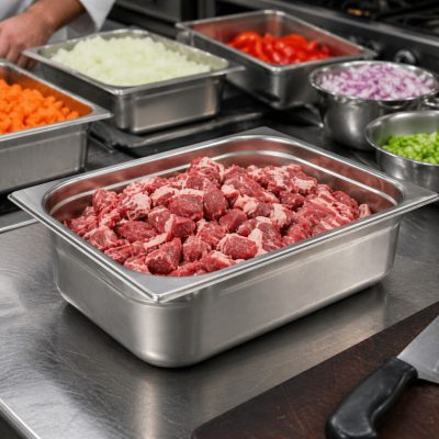 A GN 1/2 méretű, 100 mm mély rozsdamentes edény a gastronorm rendszer egyik nagy kapacitású eleme, amelyet intenzív vendéglátós használatra terveztek.