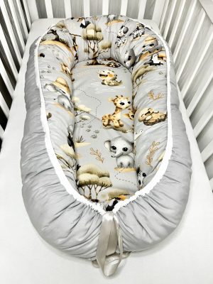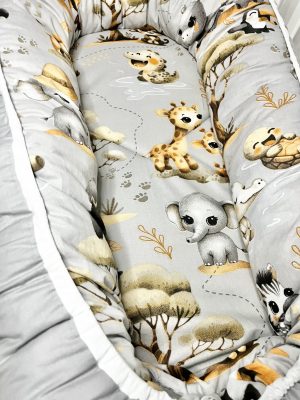 A Bbaby Afrikai Kaland – Szafari Szürke babafészek a természet, a melegség és a játékos biztonság tökéletes egységét kínálja.