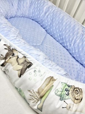 Bbaby babafészek – Sün Balázs és erdei barátai, világoskék minky és pamutvászon