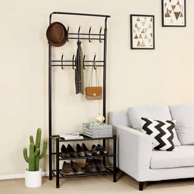 • Bejárati ruhafogas, ruhaállvány cipőtárolóval 187cm, fekete