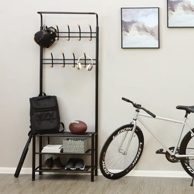 Bejárati Ruhafogas, Ruhaállvány cipőtárolóval 187cm, fekete