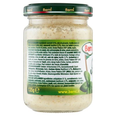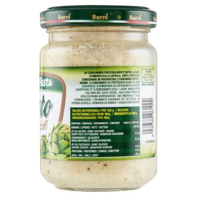 A Berni Articsókás Pesto egy különleges, lágy és krémes szósz, amely válogatott articsókából, olívaolajból és fűszerekből készül. Tökéletes választás tésztákhoz, pirítósra kenve vagy mártogatósnak. Ha szereted az olasz konyhát és az intenzív, természetes ízeket, ez a pesztó biztosan a kedvenced lesz!