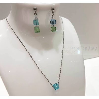 Berns® kocka alakú kristályos fülbevaló és nyaklánc szettben - Liliana