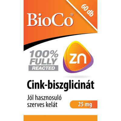A BioCo® Cink-biszglicinátkészítménymagas dózisban, 25 mg mennyiségben biztosít cink pótlást,mindössze napi 1 tabletta fogyasztásával. A készítményben új típusú, magas tisztaságú, 100%-ban teljesen reagált (fully reacted) cink-biszglicinát biztosítja a szerves vegyületformájú cink pótlását.