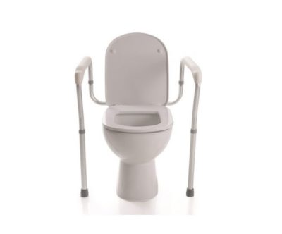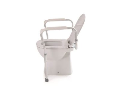Ez a könnyű alumínium vázú biztonsági sín két párnázott kartámasszal és állítási lehetőséggel rendelkezik. A konzolos kialakításnak köszönhetően könnyen és biztonságosan rögzíthető a wc csészéhez. A magassága könnyen állítható a wc kagyló magasságának megfelelően, 67 cm és 76,5 cm között. A szélessége állítható 51 cm és 59 cm között, míg a mélysége 39 cm. Ennek a terméknek a súlya mindössze 1,5 kg, és terhelhetősége 100 kg.