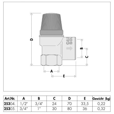 Biztonsági szelep napkollektoros rendszerekhez bemenet 1/2", kimenet 3/4" belső menettel, 10 baros kivitelben.