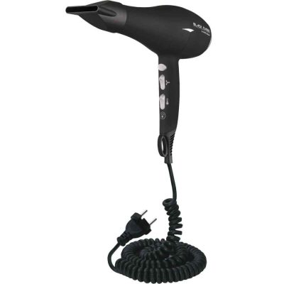 Black Mambo hotel hajszárító, fali konzol nélkül, matt fekete burkolat, ionzáló technológiával, 3 hőmérséklet állítás, hideg levegő fújás, 60cm hosszú kábel, hordozó zsákkal. 1875W teljesítmény, 72 dB hangerősség.