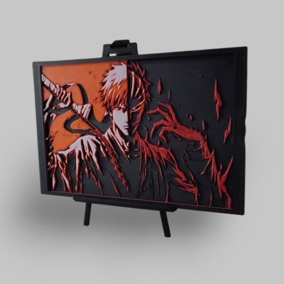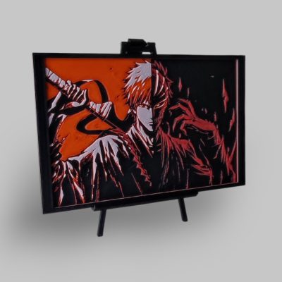 Engedd szabadjára a belső shinigamit ezzel a különleges, Hueforge technikával készült képpel, amely Ichigo Kurosakit ábrázolja ikonikus kettős formájában.