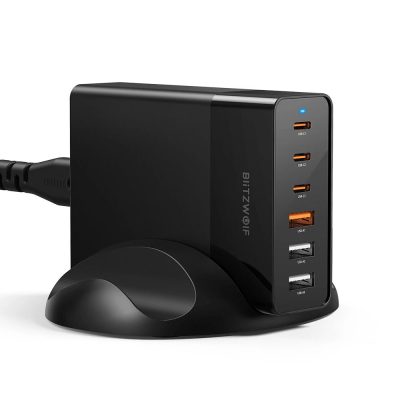 • BlitzWolf® BW-S25 asztali USB gyorstöltő, 75W, 6 USB port (4db gyorstöltő + 2 normál port)