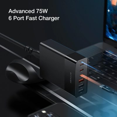 BlitzWolf® BW-S25 asztali USB gyorstöltő, 75W, 6 USB port (4db gyorstöltő + 2 normál port)
