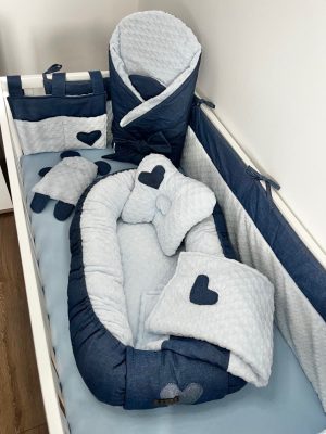 Bluebell Sky 7 részes babaágy szett – világoskék wellsoft és farmer pamut kombinációval