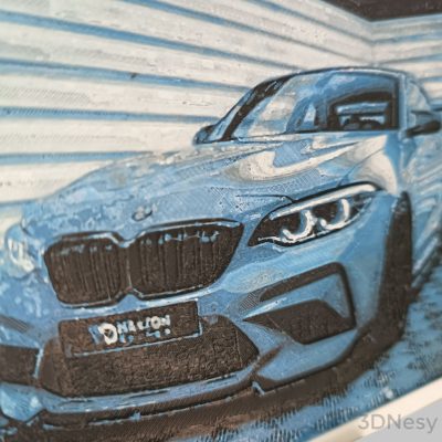 Ez a különleges BMW Hueforge kép ideális választás minden autórajongónak és a BMW márka szerelmeseinek. A PLA alapanyagból készült dekoráció tartós, mégis könnyű, így bármilyen helyiségben elhelyezhető. A Hueforge technika különleges szín- és fényhatást biztosít, amely minden szögből más és más élményt nyújt.