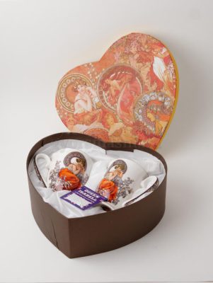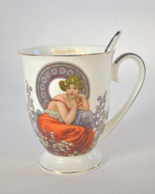 • Bögre 2 db kanállal díszdobozban Mucha motívum Limitált kiadás