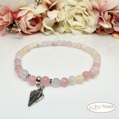 Ásvány, egyedi bokalánc, vegyes 6 mm-es gyöngyökből,ezüst színű medál díszítéssel. A gumis rugalmas megoldással több méretre is igazodik