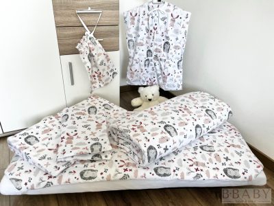 • Boldog nyuszi és süni ovis zsák – fehér alapon pasztell állatmintával