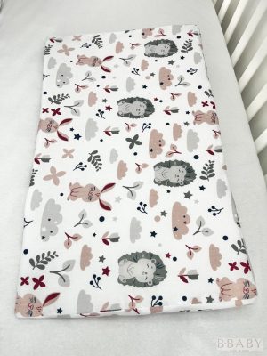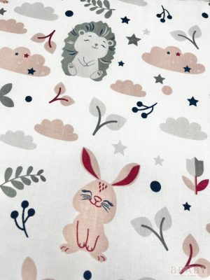 • Huzat: 100% pamutvászon – pasztell mintás nyuszikkal és sünikkel