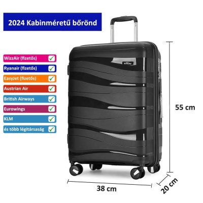 • Bontour Flow Fekete S Ryanair Wizzair 55x40x20 kabinbőrönd