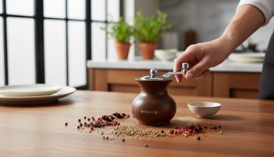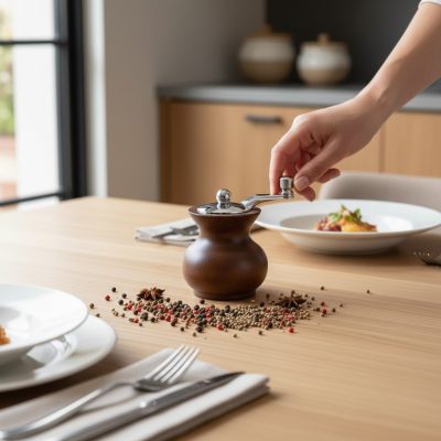 A kis méret praktikus használatot biztosít, így a daráló könnyen elfér az asztalon vagy a konyhában. Ideális frissen őrölt fűszerekhez tálaláskor vagy főzés közben.