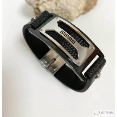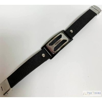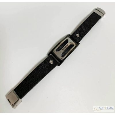 Nemes acél díszítéssel és fekete bőr szíjjal kombinált férfi karkötő. Igazán fiatalos, férfias, sportos viselet.