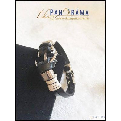 Fém és bőr szíjjal kombinált férfi karkötő. Igazán fiatalos, férfias, sportos viselet.